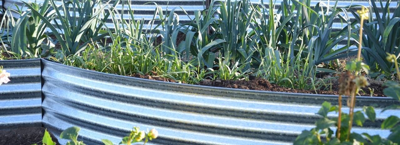These curved pieces of corrugated iron are free standing, and are ideal terraces, making for an attractive and practical garden setting.